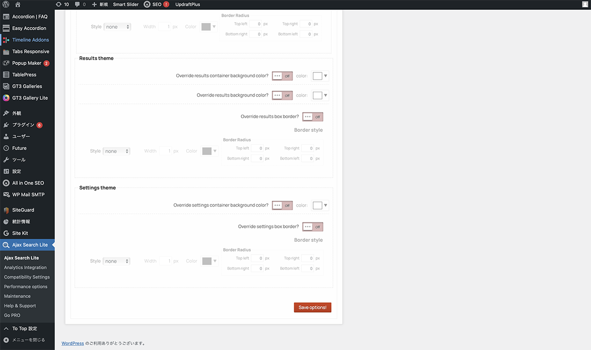ページ下のSave options! をクリックし、保存します。これで設定は完了です。