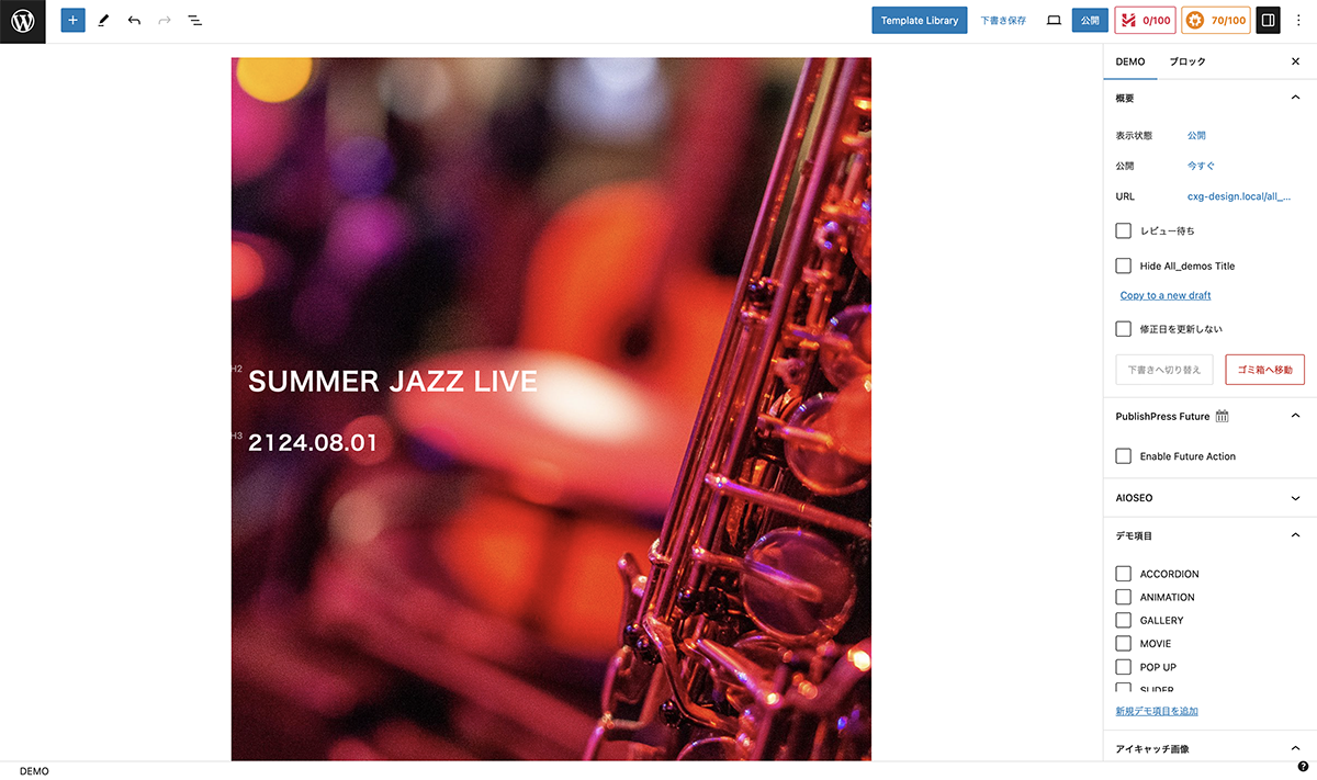 メディアライブラリを開き、画像のサムネイルが変更されているか確認します。また、編集画面を開き、カバーの背景画像が変更されているか確認します。最後にプレビューを確認します。