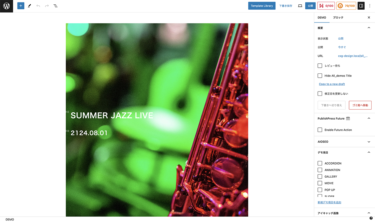 カバーブロックに画像を挿入し、タイトルを入れました。今回は、この画像を修正、入れ替えします。
