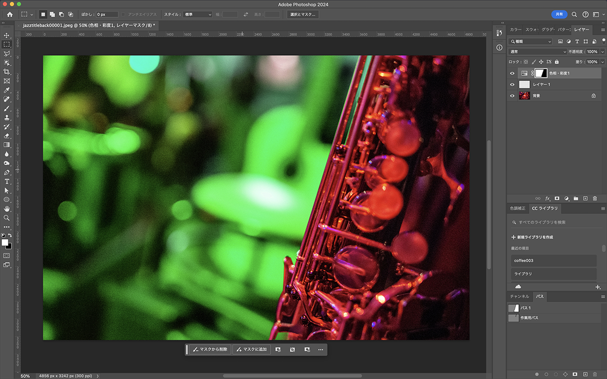 フォトショップで画像を開き、背景のみグリーンに色変更しました。