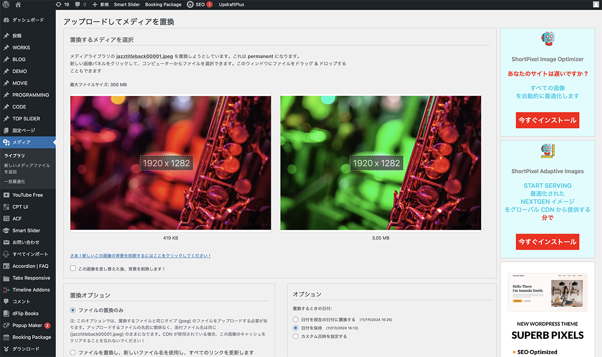 画像やバナーなどプレビューを確認してから修正して、画像を入れ替えることがあります。しかし、WordPressデフォルトでは、画像入れ替えの機能はありません。今回は、Enable Media Replaceで同じ名前のファイルを入れ替える方法を紹介します。