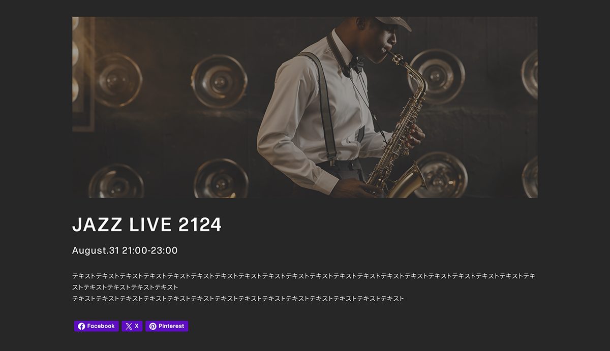 今回のDEMOは、JAZZ LIVEのシングルページです。
