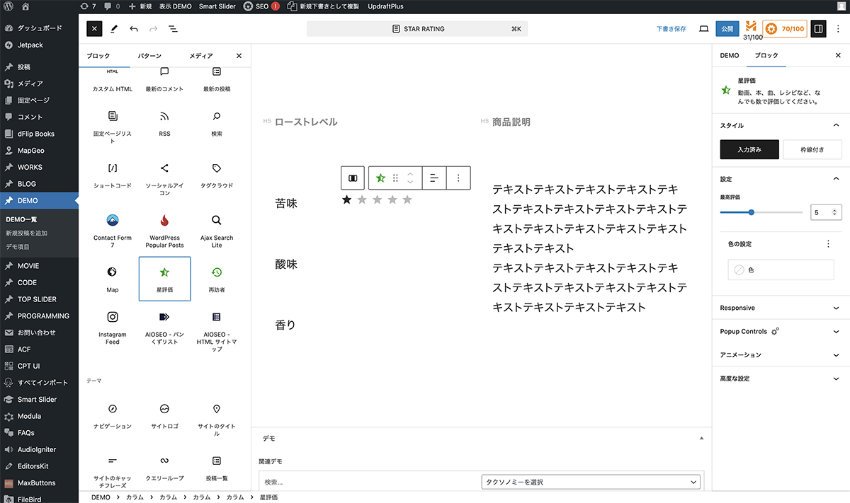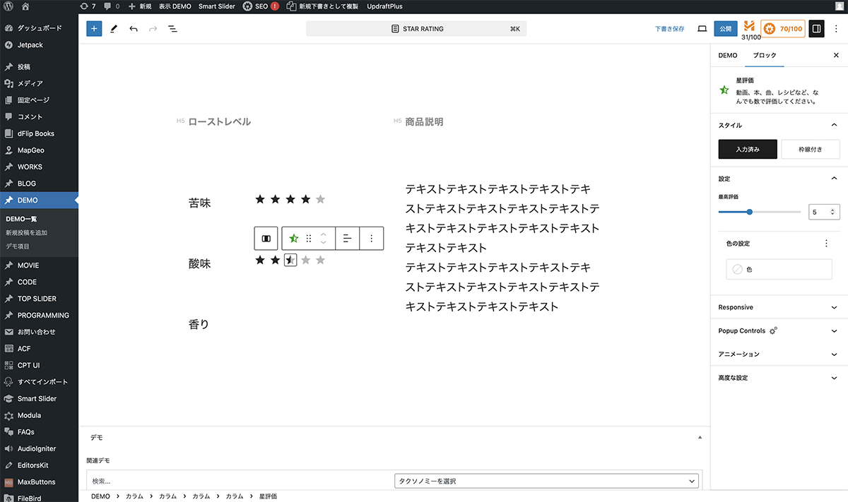 Jetpackの星評価ブロックで、商品のレーティングを作成