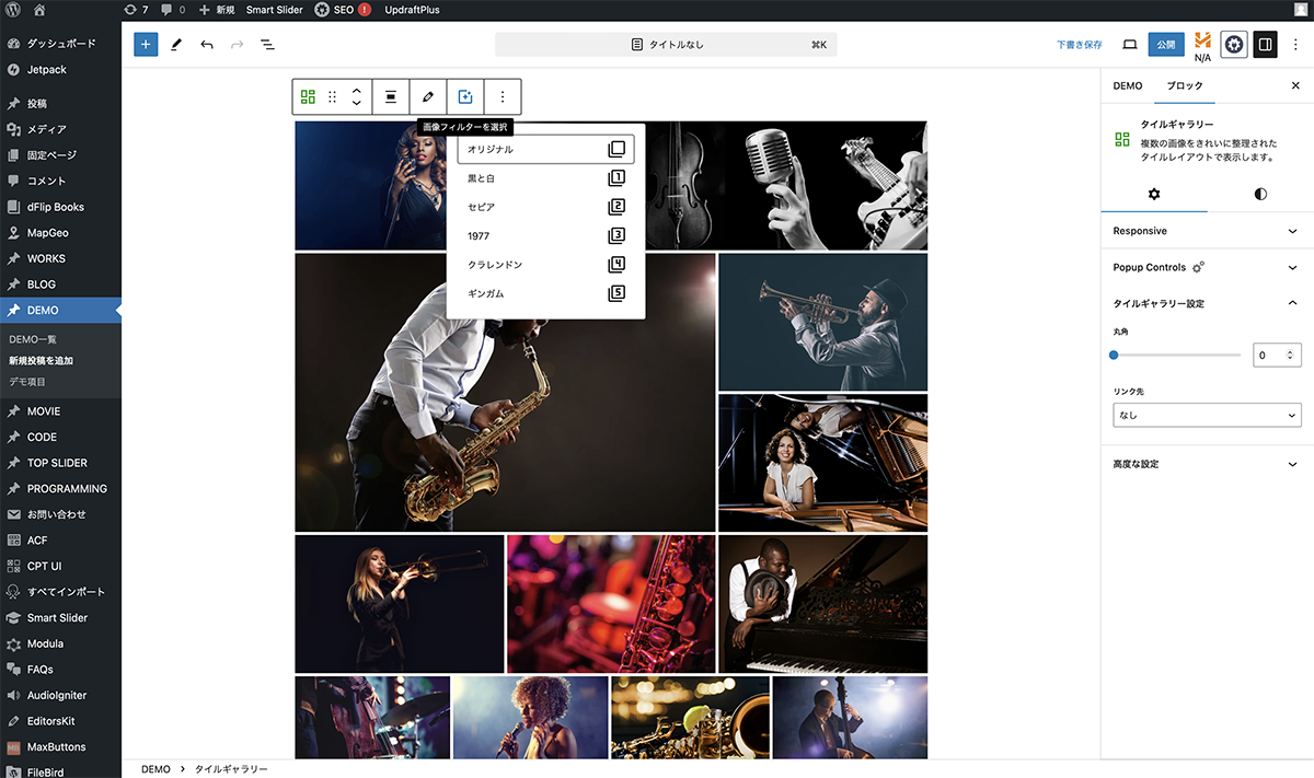 インスタグラムなどでは、画像をアップする時、画像フィルターをかけて印象的な写真にすることができます。今回は、Jetpackで、画像フィルター付きのタイルギャラリーを作成する方法を紹介します。