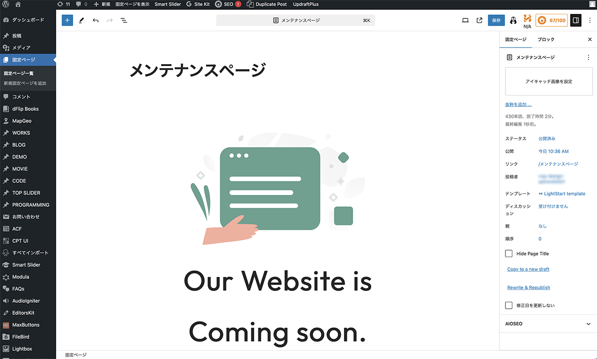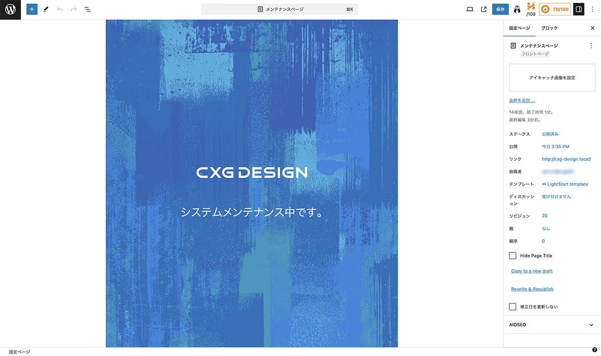 LightStartで、ブロックエディターで編集できるメンテナンスモードを作成