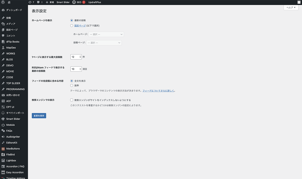 ホームページの表示を最新の投稿に設定