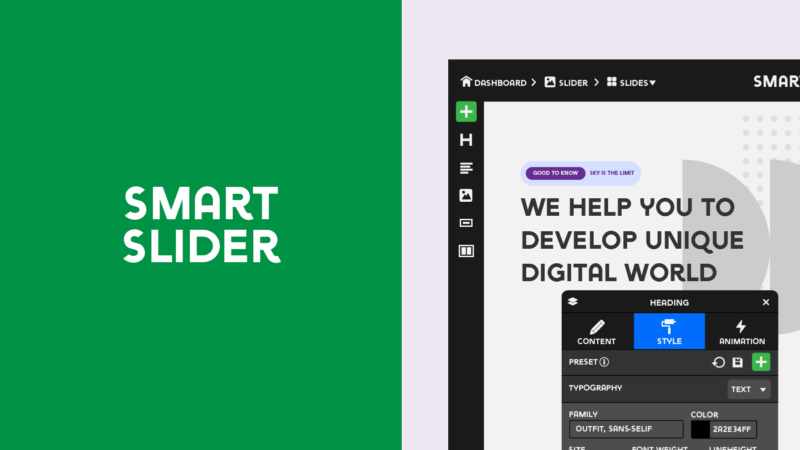トップのスライダーはSmart Slider3で作成し、タイトルを固定で表示しています。スライドを追加>静的オーバーレイを作成し、イラストとタイトルを中央に入れました。