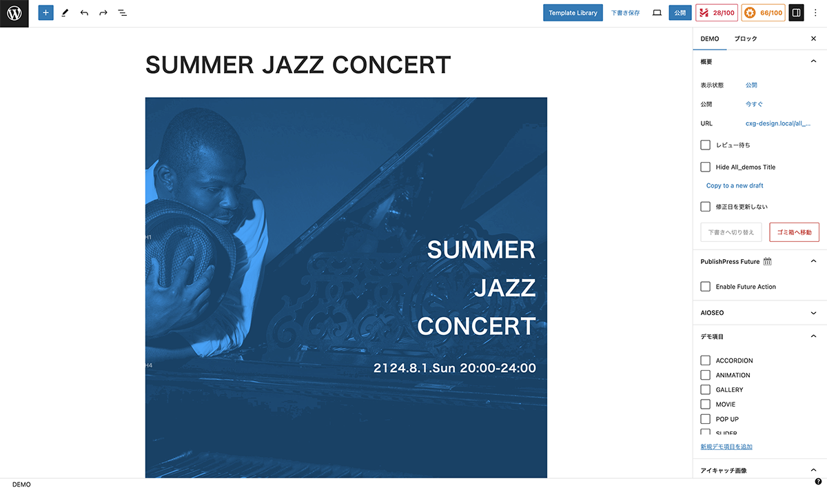 まず、公開用の記事をブロックエディターで作成します。プレビューを確認します。