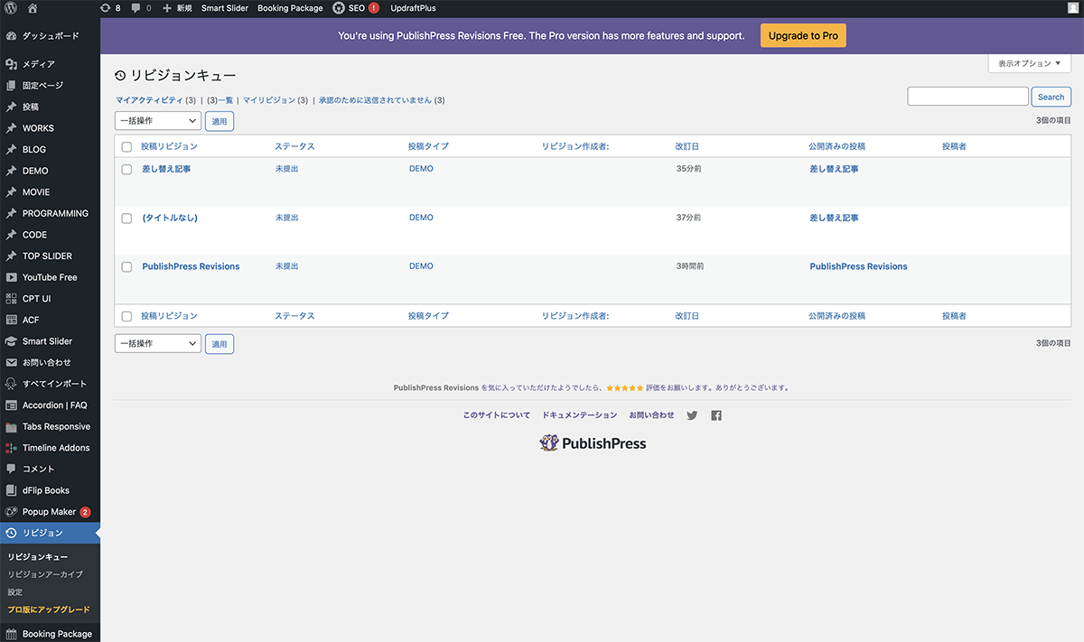 プラグインをインストール、有効化します。サイドメニューのリビジョン>設定をクリックします。公開予約リビジョンの公開日を更新のチェックを外します。