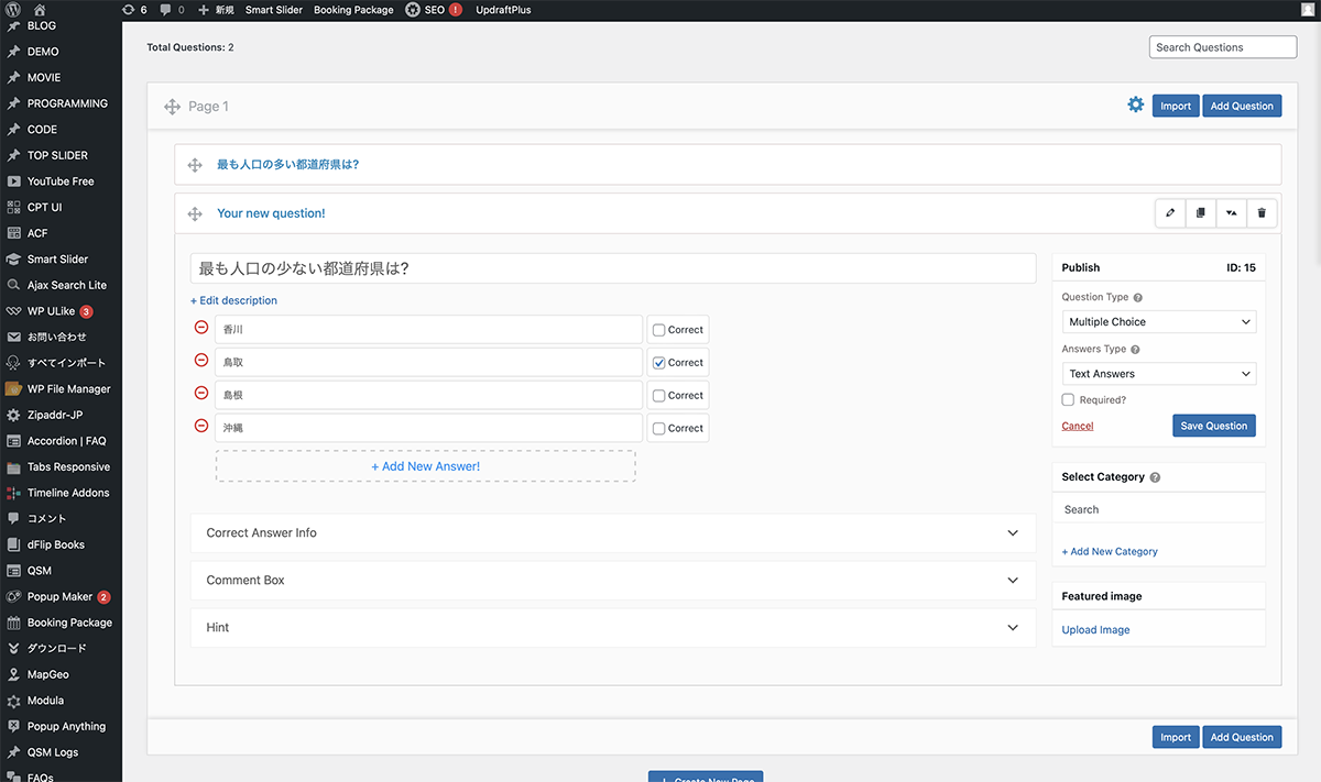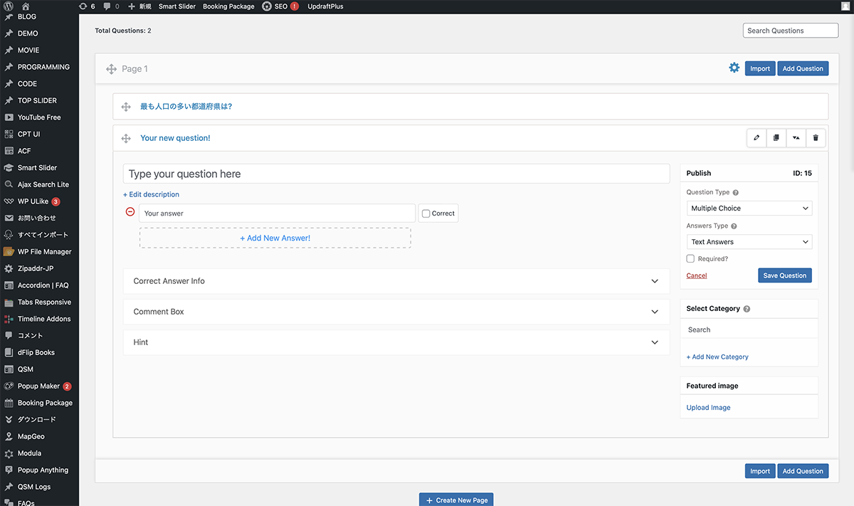 • WordPressには、メールフォームや、アンケートなどプラグインがあります。今回は、Quiz and Survey Master(QSM)で、4択クイズを作成する方法を紹介します。