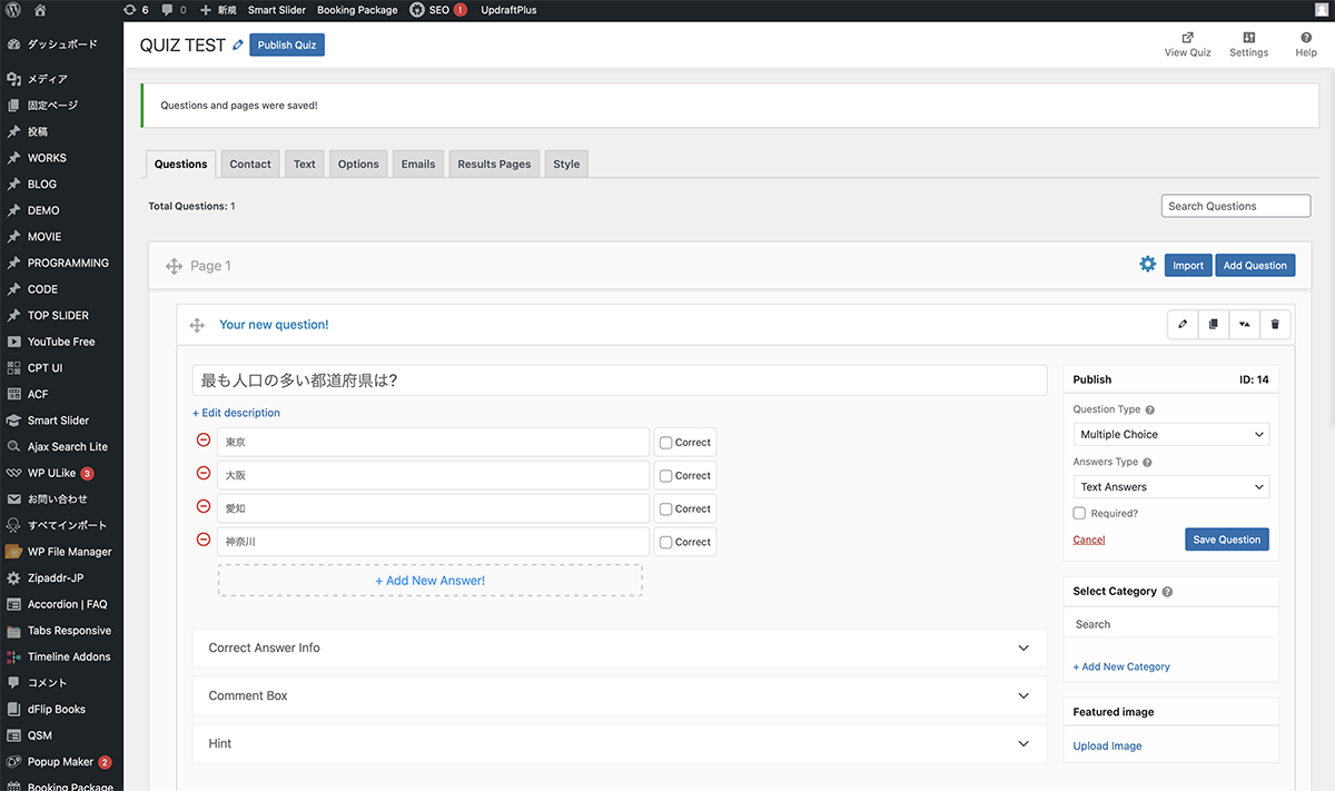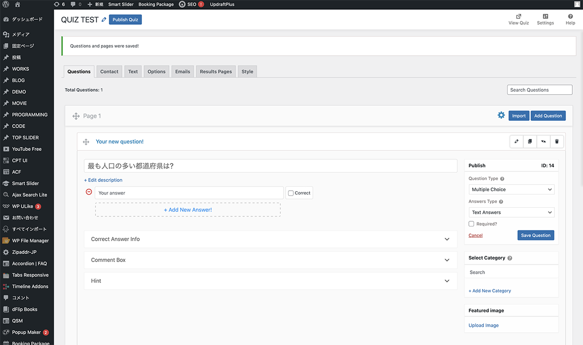 Quiz and Survey Master(QSM)で、4択クイズを作成