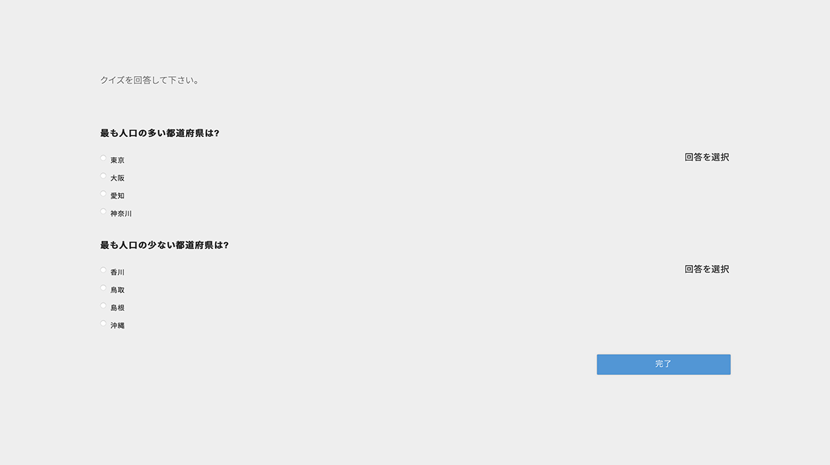 正解ラジオボタンを選択し、完了ボタンをクリック
