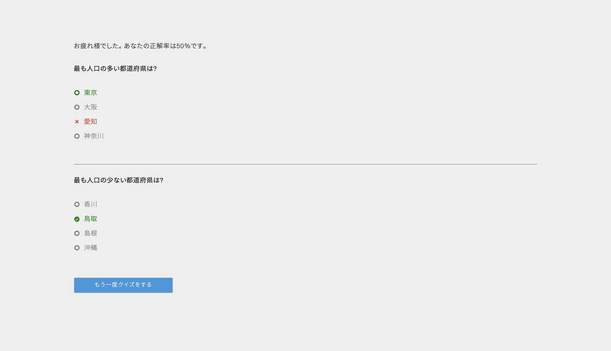お疲れ様でした。 あなたの正解率はCORRECT_SCORE%です。