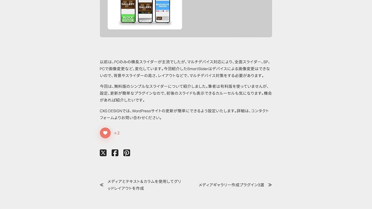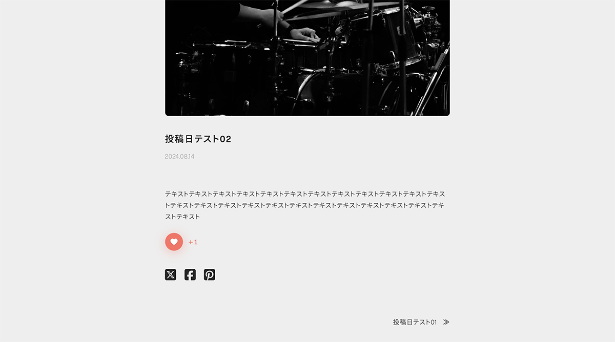 プレビューを確認します。前後にある場合は、左右に表示されます。最新の投稿は、前の投稿のみ右側に表示されます。最初の投稿は、次の投稿のみ左側に表示されます。