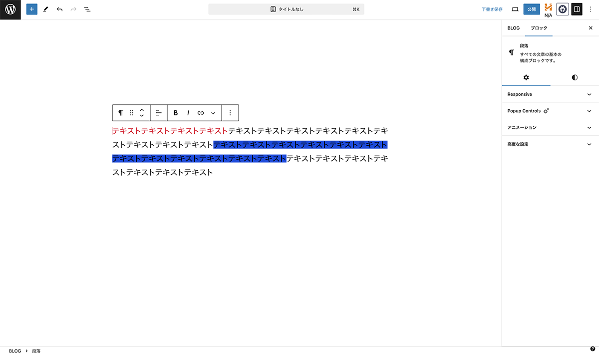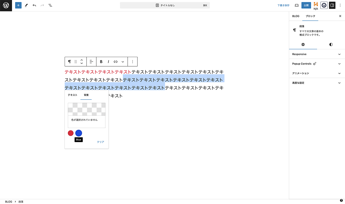 文字の背景が青色に設定