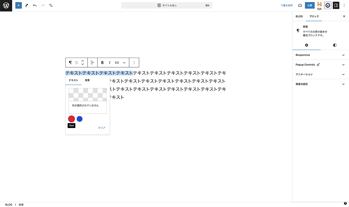 テキスト>Redをクリック