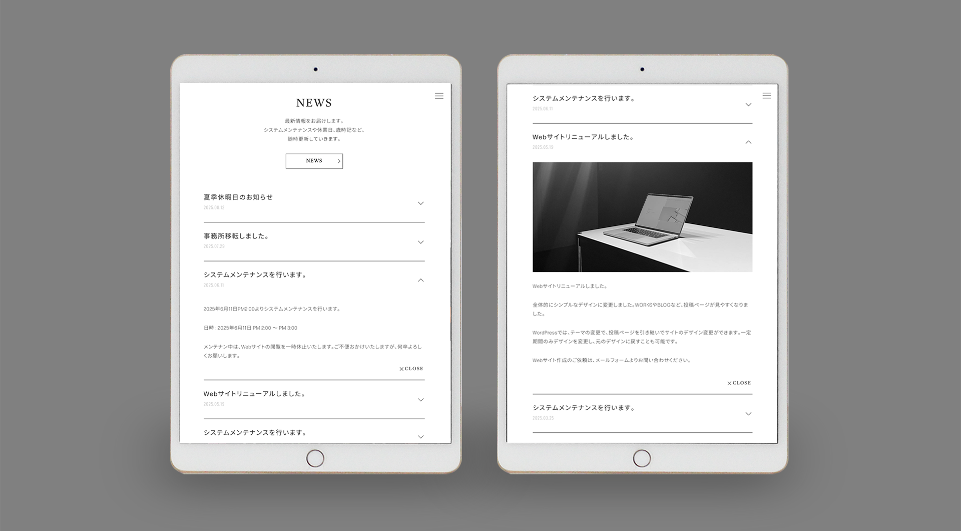 また、このWORKS詳細ページもCMSとなっており、ノーコードで更新できるようになっております。更新が多いページは、テンプレートをしっかり作成しておけば、簡単に綺麗なページが誰でも作成できます。